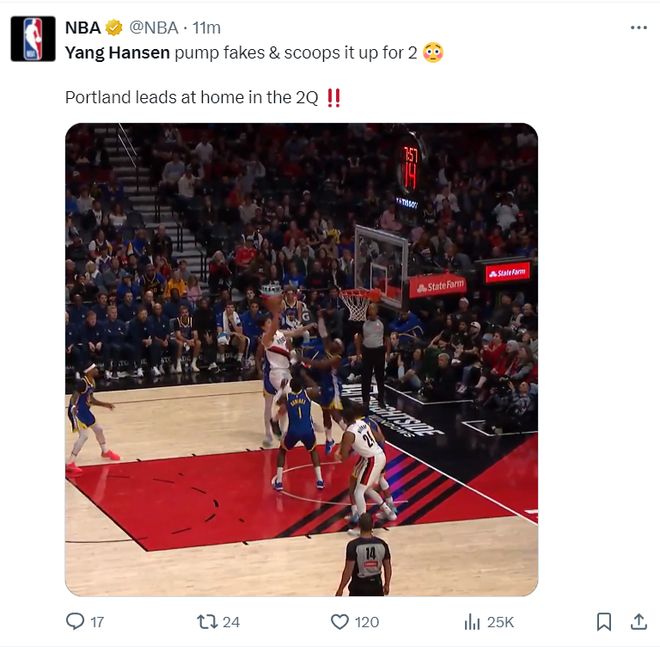 开拓者领先18分被逆转,库里28+6+5火力全开,杨瀚森9+6可圈可点