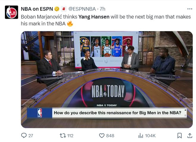 队记:杨瀚森总能在突破或转身跨步时,刚刚好抵达篮筐附近